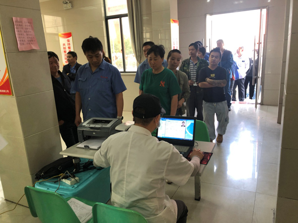 員工有秩序的排隊體檢登記