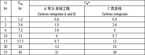三相系統(tǒng)用電纜的U0值推薦如下表: