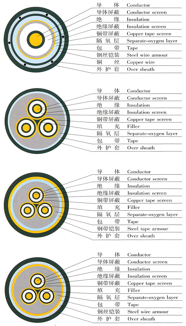 本產(chǎn)品按GB12706-91《額定電壓35kV及以下銅芯、鋁芯塑料絕緣電力電纜》、GB12666.5-90《電線電纜成束燃燒試驗》、GB/T17650-1998《取自電纜或光纜的材料燃燒時釋出氣體的試驗方法》和GB/T17651-1998《電纜或光纜在特定條件下燃燒的煙密度測定》標準生產(chǎn)0.6/1kV-26/35kV塑料絕緣電力電纜,同時還可根據(jù)用戶需要按國際電工委員會推薦標準IEC、英國標準、德國標準及美國標準生產(chǎn)。