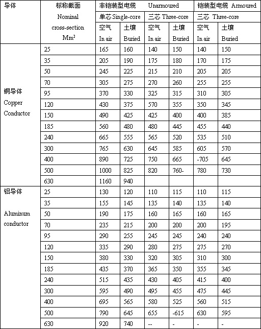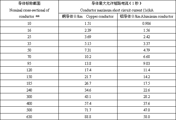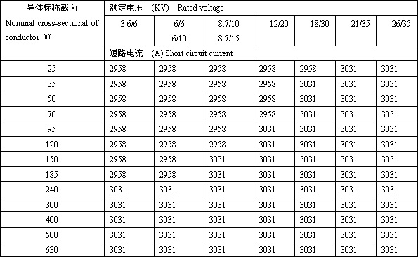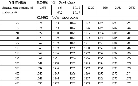 短路時(持續(xù)時間不超過5s)電纜導(dǎo)體的溫度不超過250。