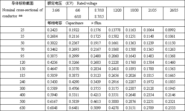 U—電纜設(shè)計用導(dǎo)體之間的額定工頻電壓;