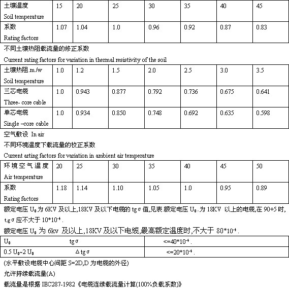 環(huán)境條件對電纜載流量的修正系數(shù)